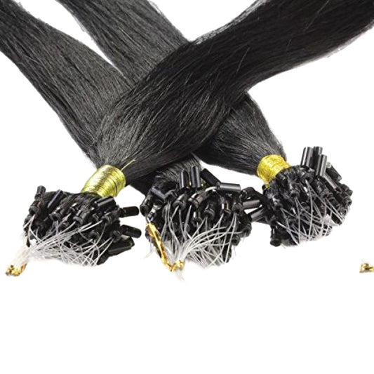 Answer richtDiese revolutionäre Methode erlaubt es dir, die Haarsträhnen ganz ohne Hitze oder Kleber in dein Eigenhaar einzuarbeiten. Jede Strähne ist mit einem Microring ausgestattet, durch den du ganz einfach deine eigenen Haare hindurchziehst und den Ring dann mit der Microringzange sicher anbringst.Mit unseren Microring Sets erhältst du 100 Strähnen aus hochwertigem menschlichem Remy-Haar, das sich nach dem Entfernen der Extensions problemlos wiederverwenden lässt.Entdecke die Vielfalt unserer Microring Extensions in glatter, welliger oder lockiger Haarstruktur ext